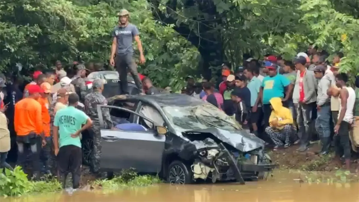 Miembros del Cuerpo de Bomberos de Villa Riva acudieron rápidamente a la escena y extrajeron el vehículo, donde se encontraba la persona atrapada.
