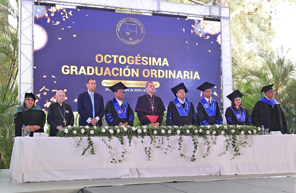 La Vega, R.D. – La Universidad Católica del Cibao (UCATECI) celebró, la Octogésima Graduación Ordinaria, presidida por su rector, S. E. R. Mons. Carlos Tomás Morel Diplán, arzobispo coadjutor de la Arquidiócesis de Santo Domingo. En el solemne acto fueron investidos 685 nuevos profesionales de los programas de grado y posgrado de la institución.
