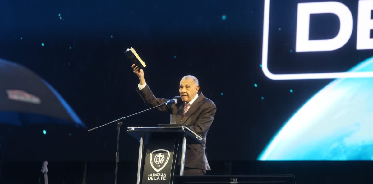 Miles de fieles se congregaron este 1 de enero en el Estadio Olímpico Félix Sánchez para participar en la tradicional concentración evangélica Batalla de la Fe 2026, encabezada por el pastor Ezequiel Molina Rosario, quien presentó el mensaje titulado “El Día de Dios”.